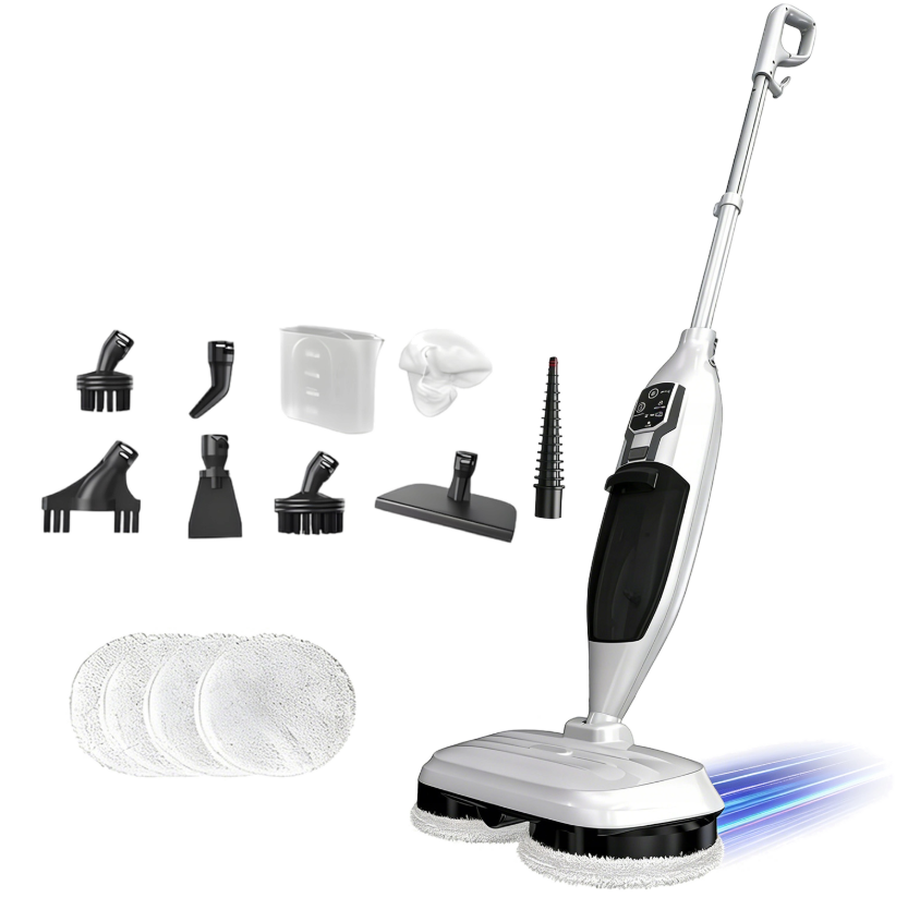 Mop parowy obrotowy 1300 W Obrotowa głowica i stały strumień pary pomagają dokładnie czyścić podłogi, a 2 tryby pracy pozwalają dopasować działanie do potrzeb. Wyjmowany zbiornik na wodę zwiększa wygodę użytkowania, a bogaty zestaw akcesoriów sprawia, że urządzenie sprawdza się także przy czyszczeniu łazienki, kuchni i trudno dostępnych miejsc. Nakładki z mikrofibry są delikatne dla powierzchni i można je prać, co ułatwia utrzymanie higieny. Kluczowe cechy: • moc 1300 W – sprawne i skuteczne czyszczenie • 2 tryby pracy – łatwiejsze dopasowanie do powierzchni • obrotowa głowica – wygodniejsze manewrowanie podczas sprzątania • szybkie nagrzewanie – gotowość do działania w krótkim czasie • pojemny, wyjmowany zbiornik – większy komfort użytkowania • zestaw 13 akcesoriów – więcej możliwości czyszczenia w całym domu • nakładki z mikrofibry – skuteczne usuwanie zabrudzeń bez smug To funkcjonalne urządzenie, które łączy wygodę, wszechstronność i skuteczność w jednym. |  |