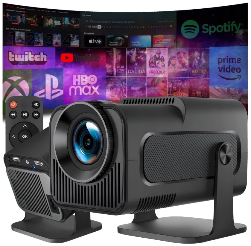 Projektor LED Heelly 1280x720 Wi-Fi Wyposażony w system Android Smart TV, daje dostęp do popularnych aplikacji i pozwala oglądać ulubione treści bez dodatkowych urządzeń. Łączność Wi-Fi i Bluetooth ułatwia bezprzewodowe połączenie z telefonem, tabletem, komputerem czy głośnikiem, a porty HDMI, USB i AV zwiększają swobodę korzystania. Rozdzielczość natywna 1280x720, jasność 390 ANSI lm oraz automatyczna korekcja obrazu pomagają uzyskać wyraźny, przyjemny w odbiorze obraz. Obrotowa konstrukcja 180° pozwala wygodnie wyświetlać obraz tam, gdzie chcesz — nawet na suficie. Kluczowe cechy: - Smart TV z dostępem do popularnych aplikacji