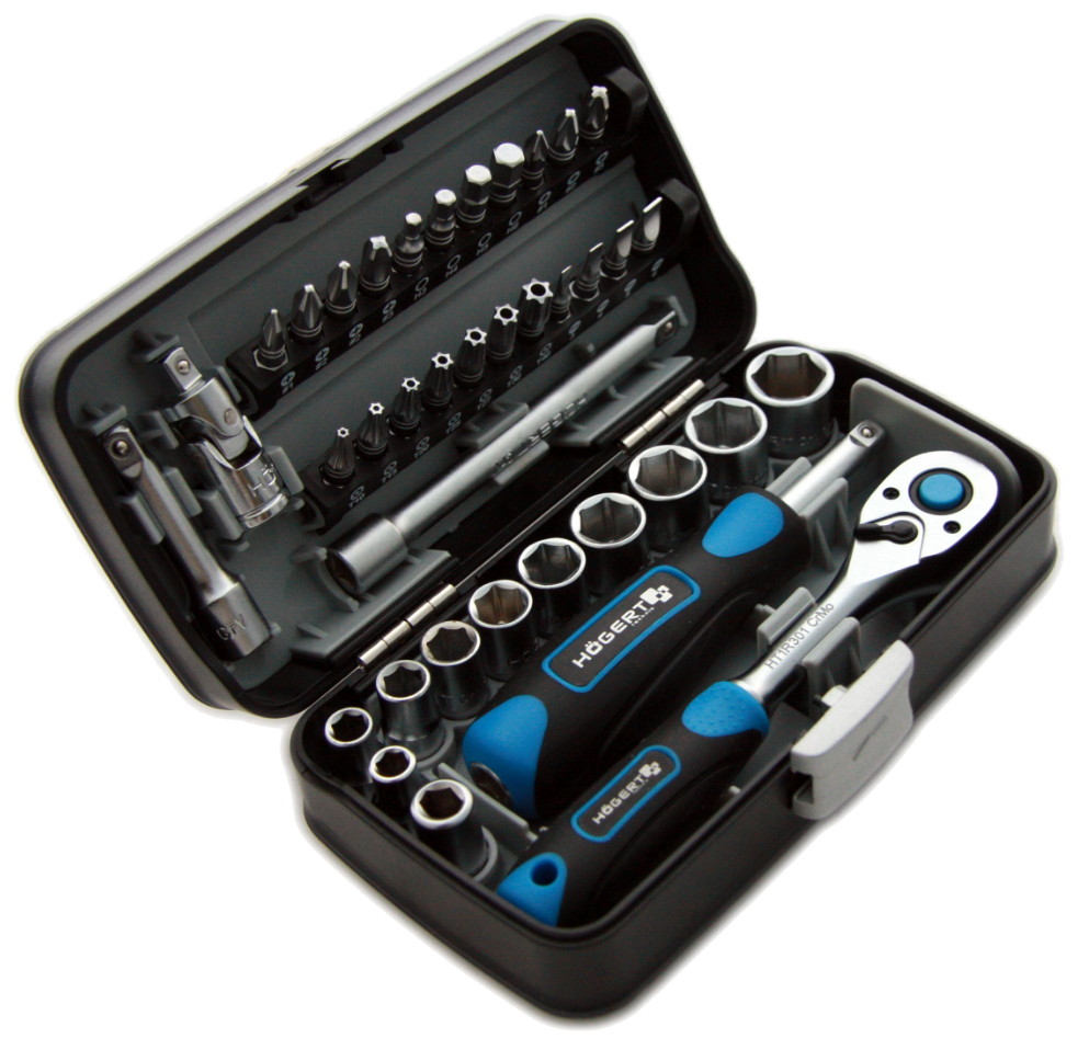 Zestaw Hogert Technik HT1R462 W poręcznej walizce znajdziesz 38 elementów: nasadki 5,5–14 mm, bity SL/PH/PZ/Hex/Torx, grzechotkę 72T, wkrętak, dwie przedłużki, przegub i adapter. Nasadki z trwałej stali chromowo-wanadowej, a końcówki S2 radzą sobie z intensywną pracą. Precyzyjna grzechotka o drobnym skoku ułatwia manewry w ciasnych miejscach, a metalowe zawiasy etui dbają o długą żywotność zestawu. Kluczowe cechy: • 38 elementów w jednym miejscu – szybkie działanie bez szukania braków. • Cr-V + S2 – odporność na zużycie i pewny chwyt. • 72-zębowa grzechotka – płynna praca przy małej amplitudzie ruchu. • Komplet typów (SL, PH, PZ, Hex, Torx) – gotowość na różne zadania. • Akcesoria: przedłużki 50/100 mm, przegub, wkrętak, adapter – łatwy dostęp do trudno dostępnych śrub. • Walizka z metalowymi zawiasami – porządek i bezpieczeństwo w transporcie. Praktyczny, trwały i zawsze pod ręką — HT1R462 to pewny sposób na sprawne naprawy |  |